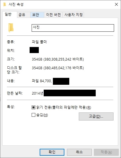 - 저는 지금까지 보관해온 사진들 약 350GB를 백업하였습니다.