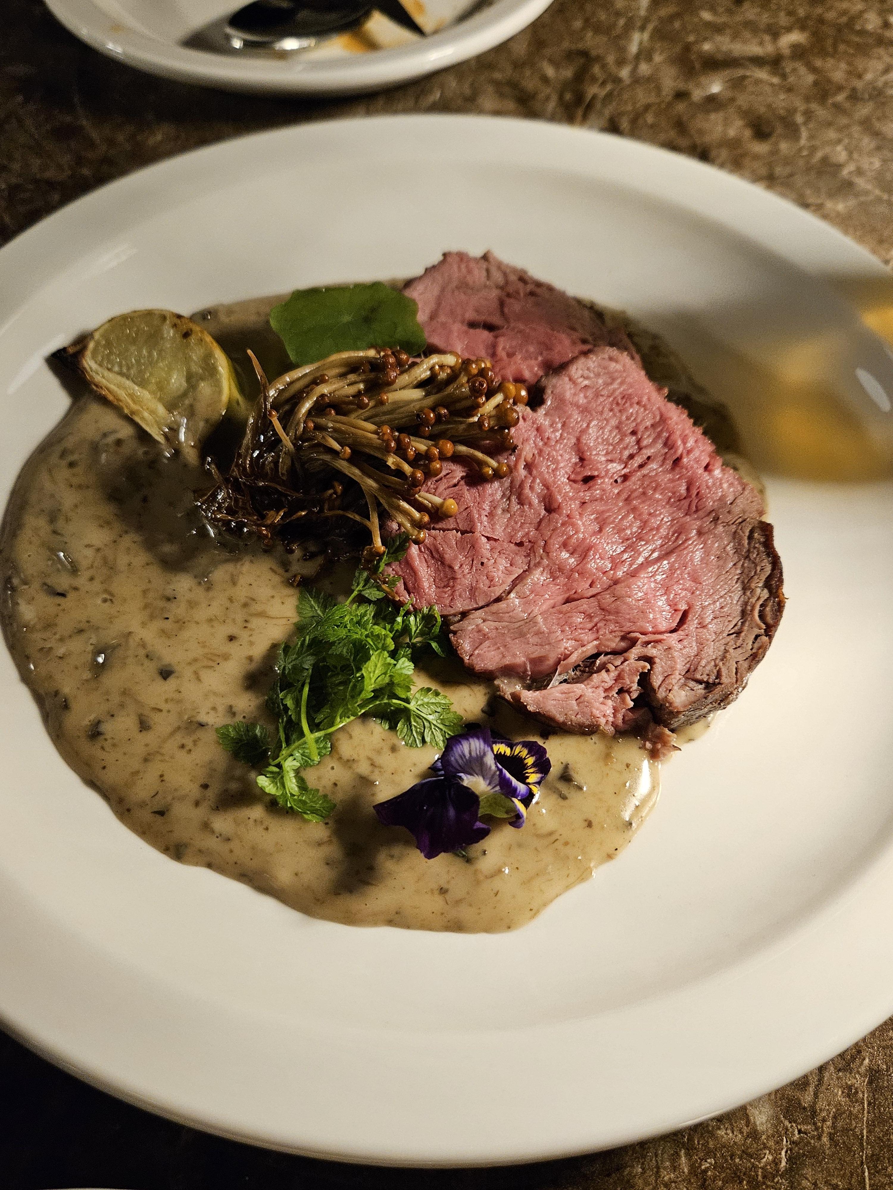 메인 요리로 스테이크를 주문했어요. 육즙이 가득한 미디엄 레어로 주문했는데, 정말 완벽했어요! 부드러운 육질과 풍부한 맛이 입안에서 춤을 추는 것 같았죠. 가니쉬로 나온 구운 채소들도 스테이크와 잘 어울렸어요.