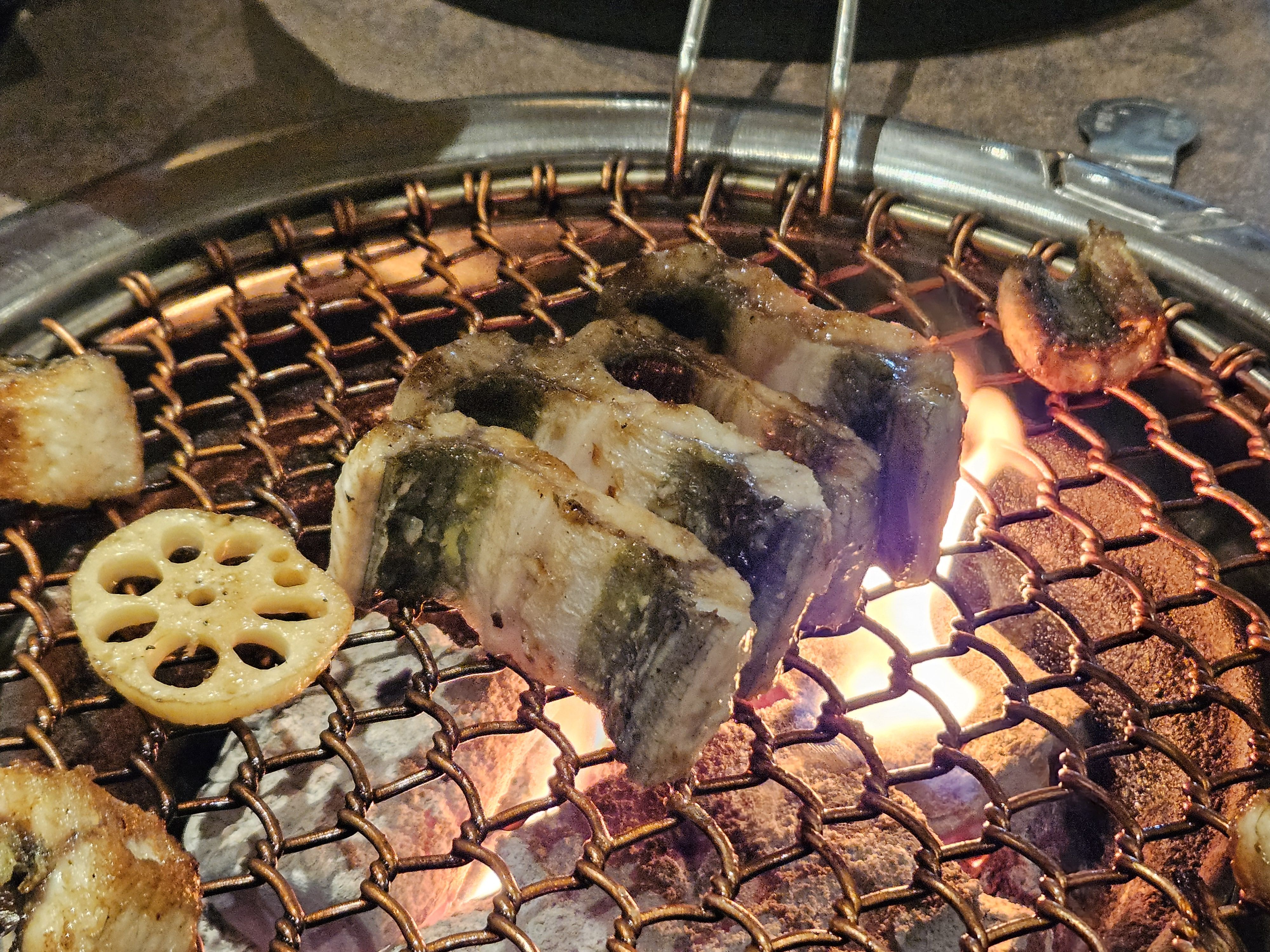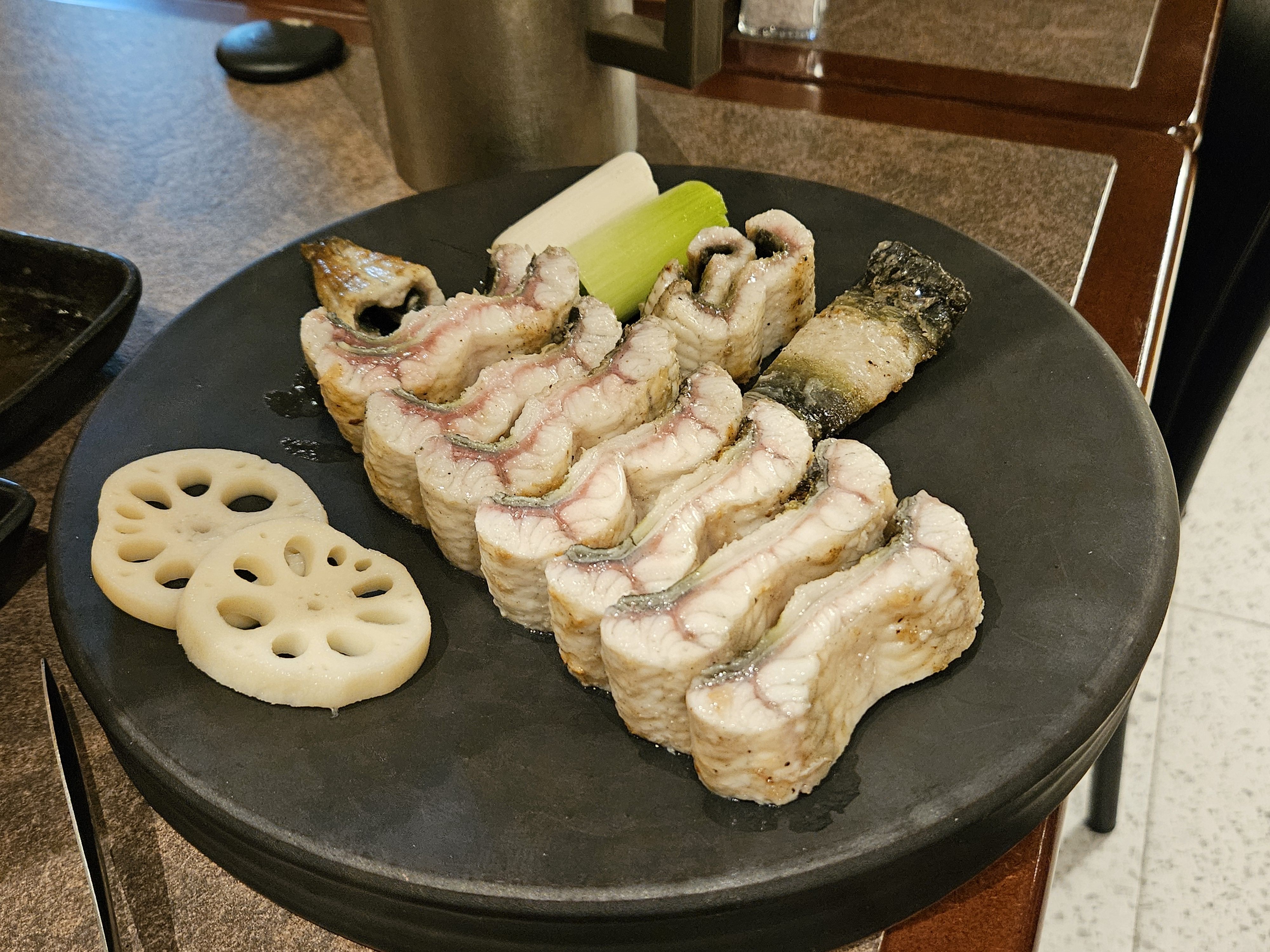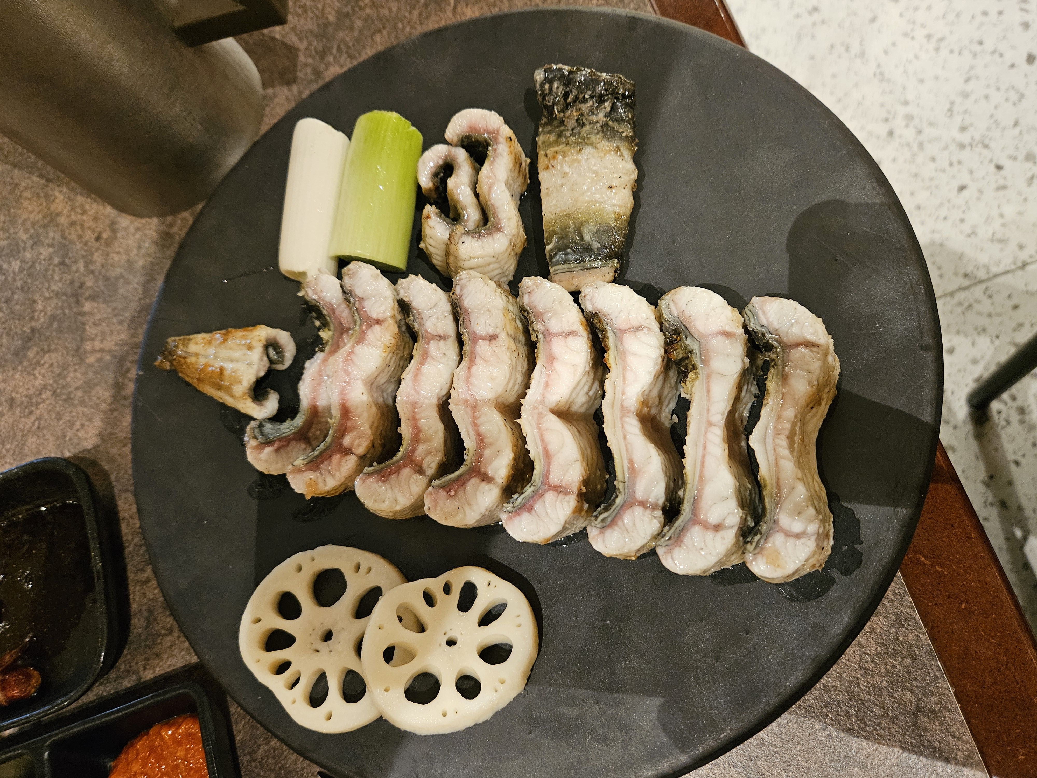 장어가 나왔을 때 그 비주얼에 또 한 번 놀랐어요! 정말 '웅장'하다는 말이 딱 맞더라고요. 굵고 큼직한 장어들이 숯불에 구워져 나와서 식욕을 자극했답니다.
