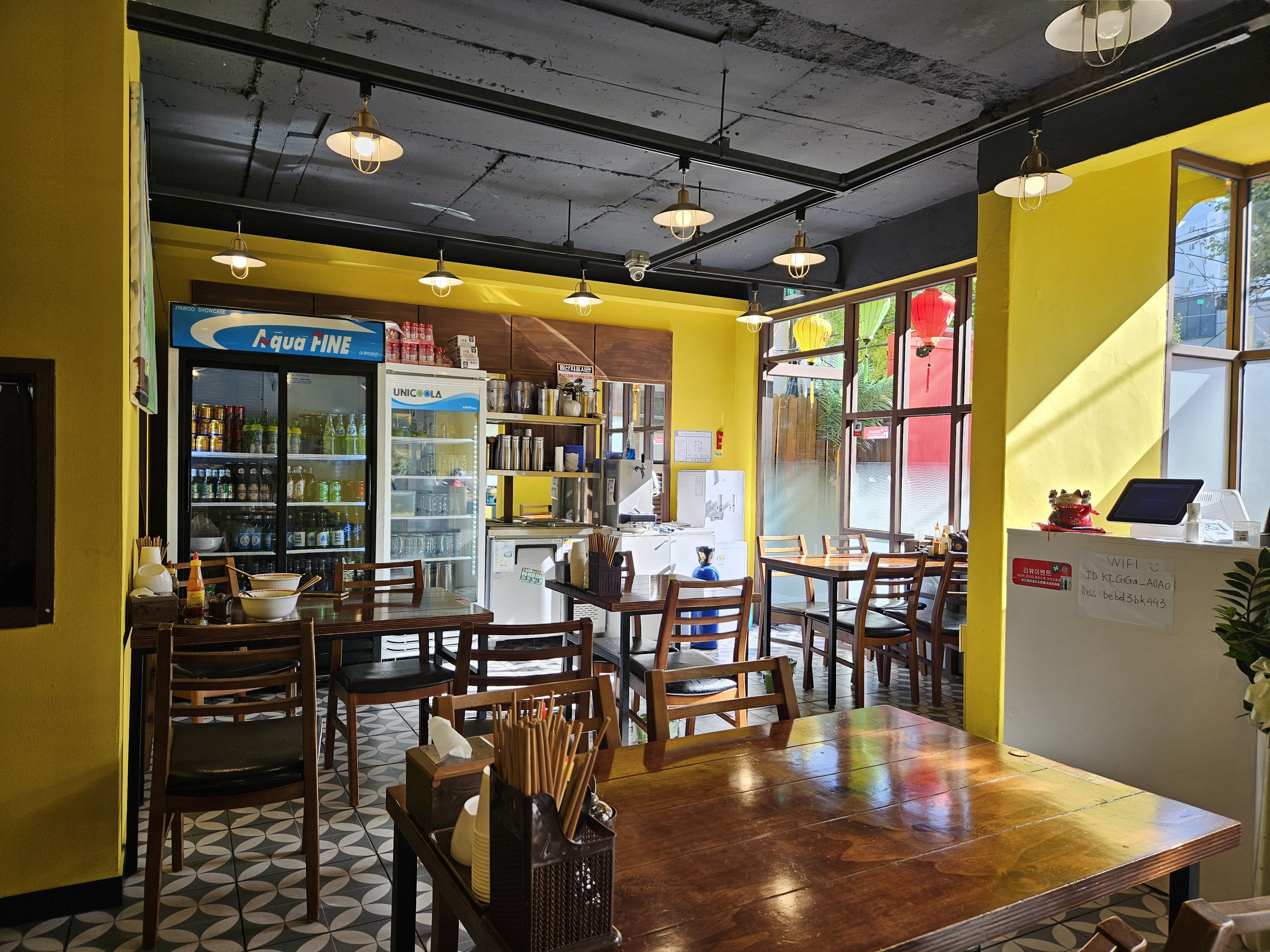 매장에 들어서자마자 베트남에 온 것 같은 느낌이 들었어요. 🇻🇳 벽에는 베트남 풍경 사진들이 걸려있고, 은은한 조명이 분위기를 더욱 좋게 만들어줬어요.