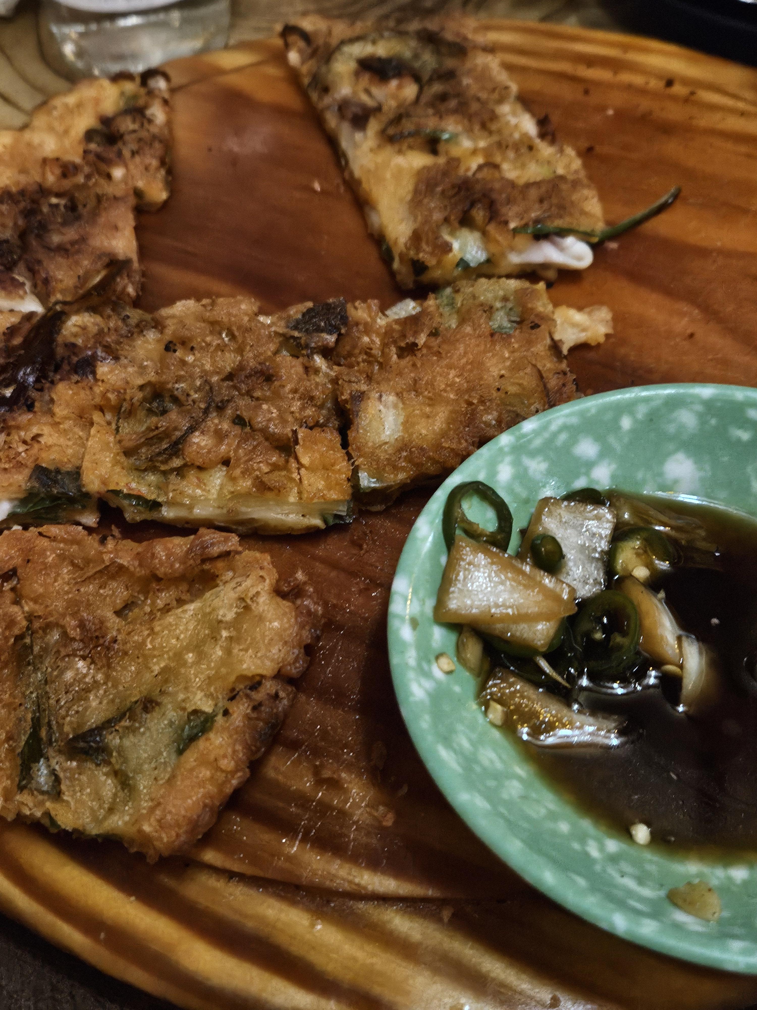 모든 음식이 정말 맛있었지만, 특히 노천파전은 정말 잊을 수 없는 맛이었어요.