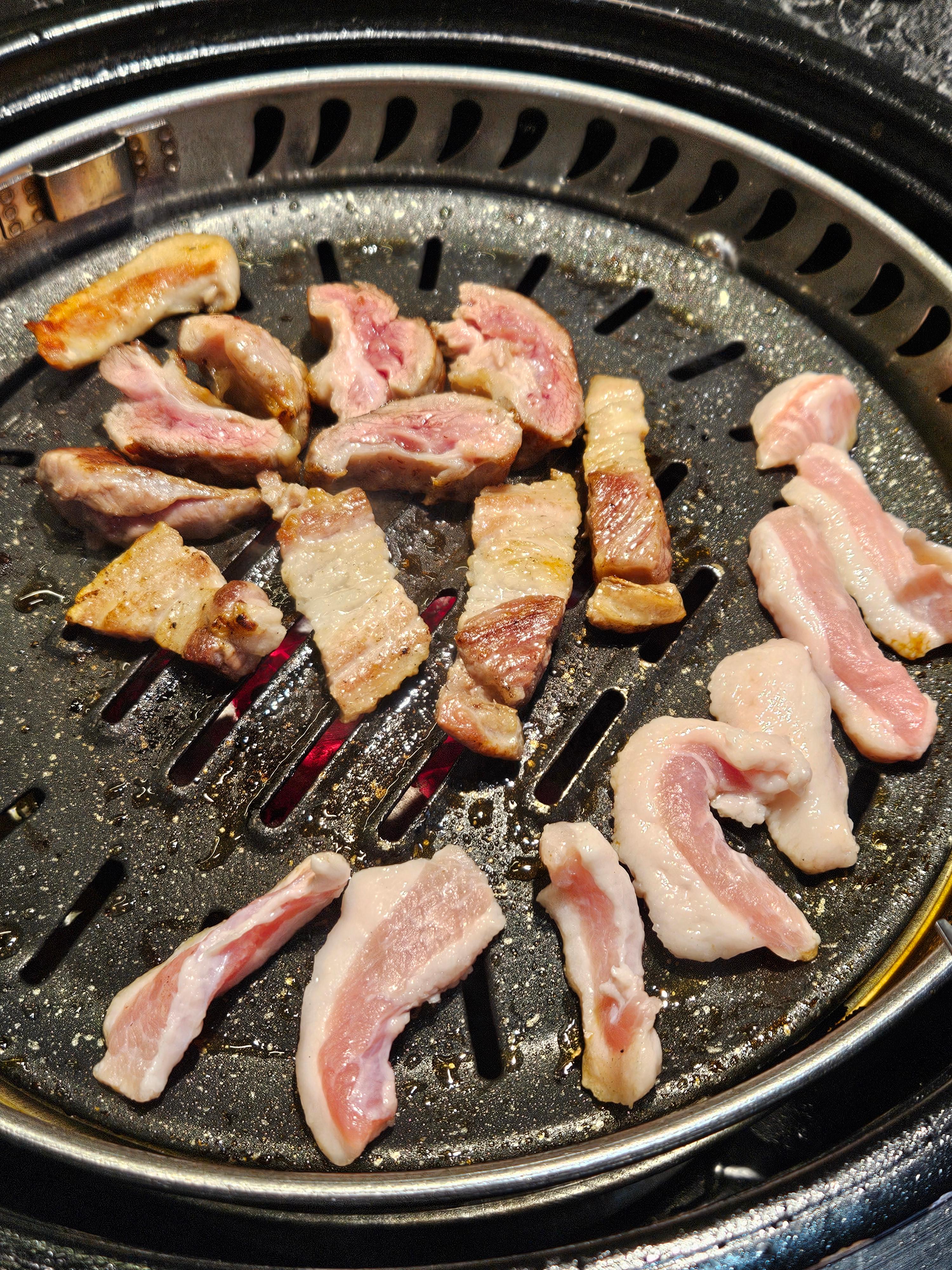 고기가 정말 신선하고 맛있었어요! 특히 삼겹살과 두항정살이 일품이었답니다.