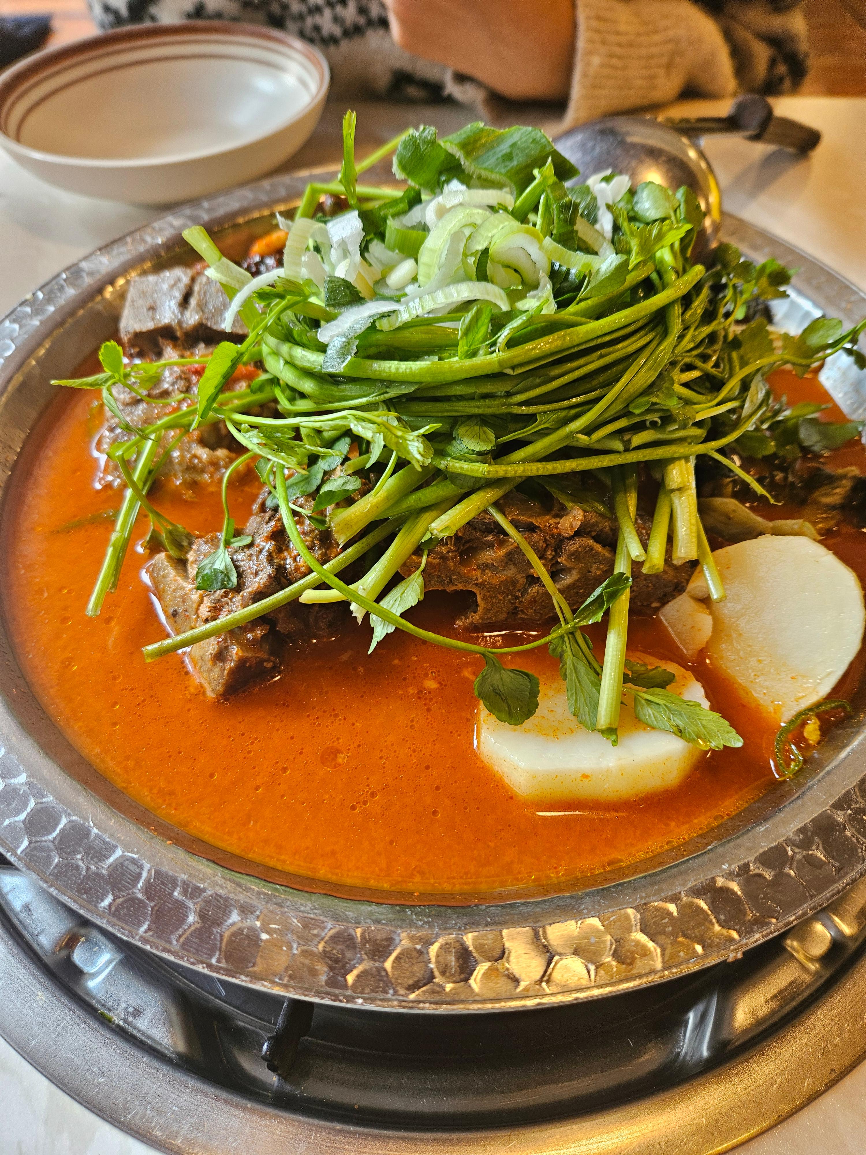 맑은 삼삼뼈국은 정말 깔끔하고 담백한 맛이었어요. 🍖 한우 사골로 우려낸 육수라 그런지 깊은 맛이 느껴졌어요.뼈에 붙어있는 고기도 부드럽고 맛있었어요. 특히 미나리가 들어가 있어서 향긋한 맛이 더해져 좋았어요. 국물이 너무 맑아서 속이 편안해지는 느낌이었어요.