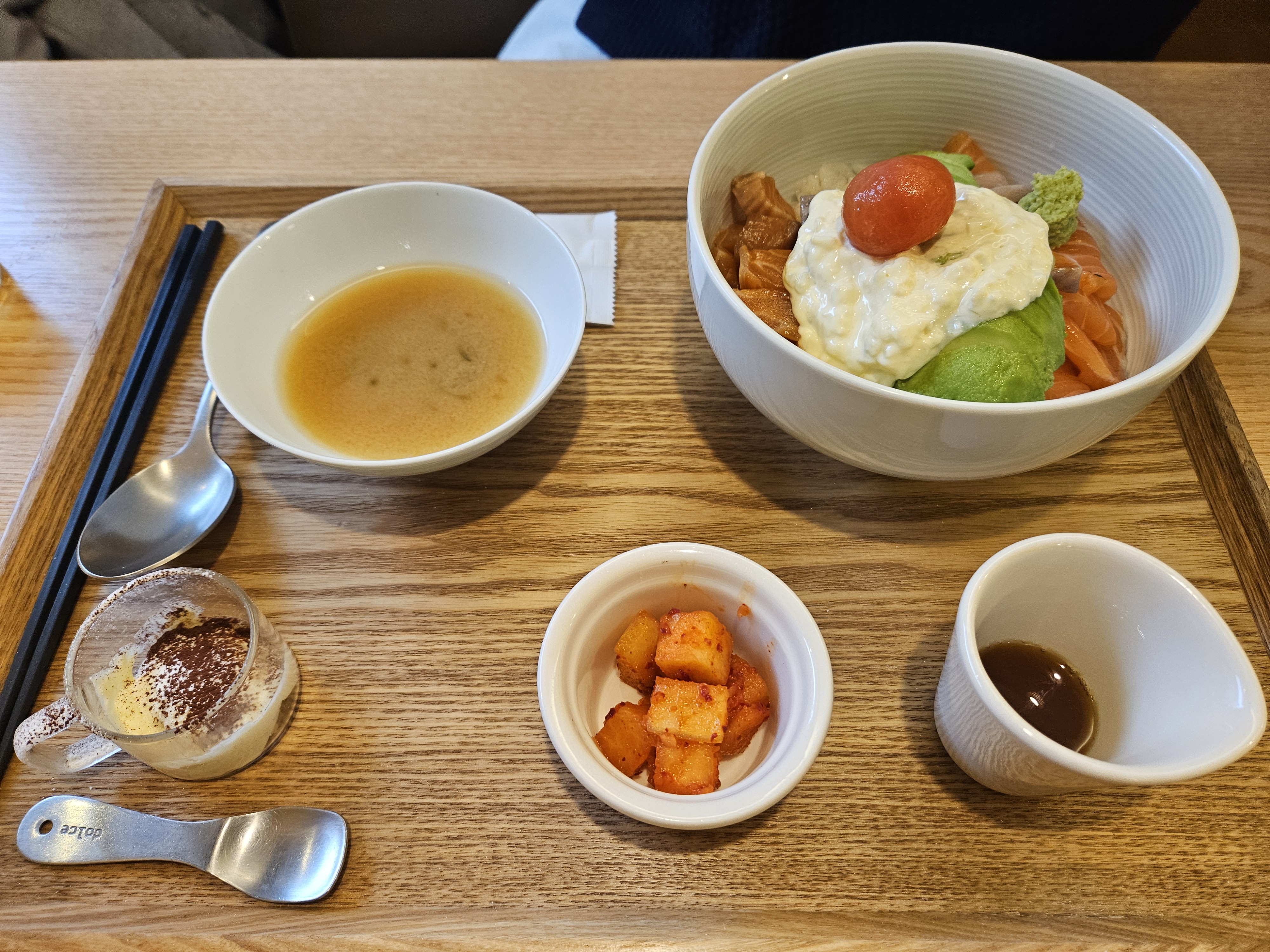 가격: 19,000원- 밥 위에 신선한 노르웨이 연어와 아보카도가 듬뿍 올라간 덮밥이에요. 간장 소스를 뿌려 먹으면 연어의 부드러움과 소스의 감칠맛이 완벽하게 어우러져요! 🐟