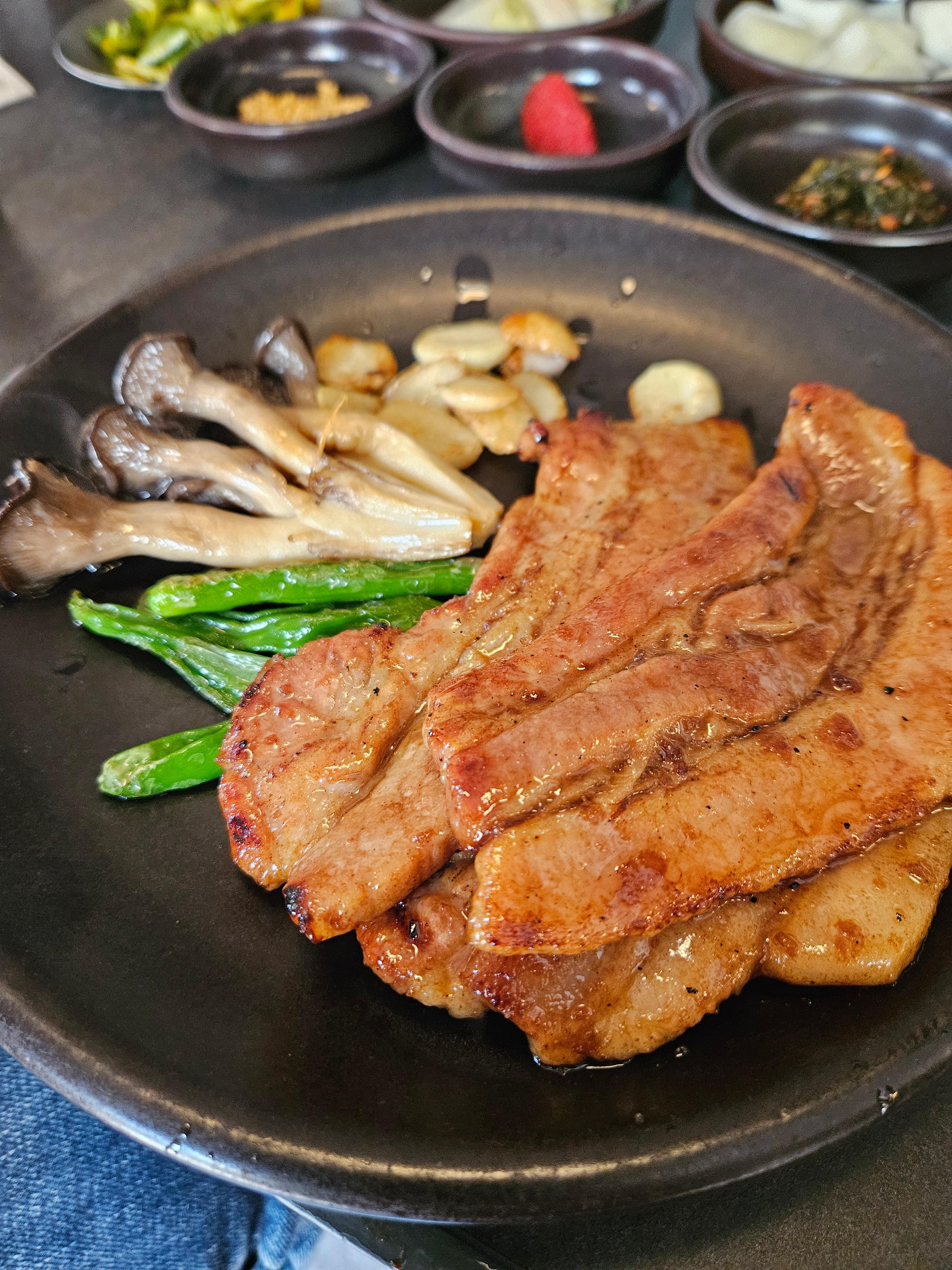 밑반찬도 하나같이 간이 세지 않고 재료 본연의 맛을 살린 느낌이었어요. 백김치와 장아찌는 깔끔하고 개운해서 고기와 함께 먹기에 정말 좋았답니다. 😋