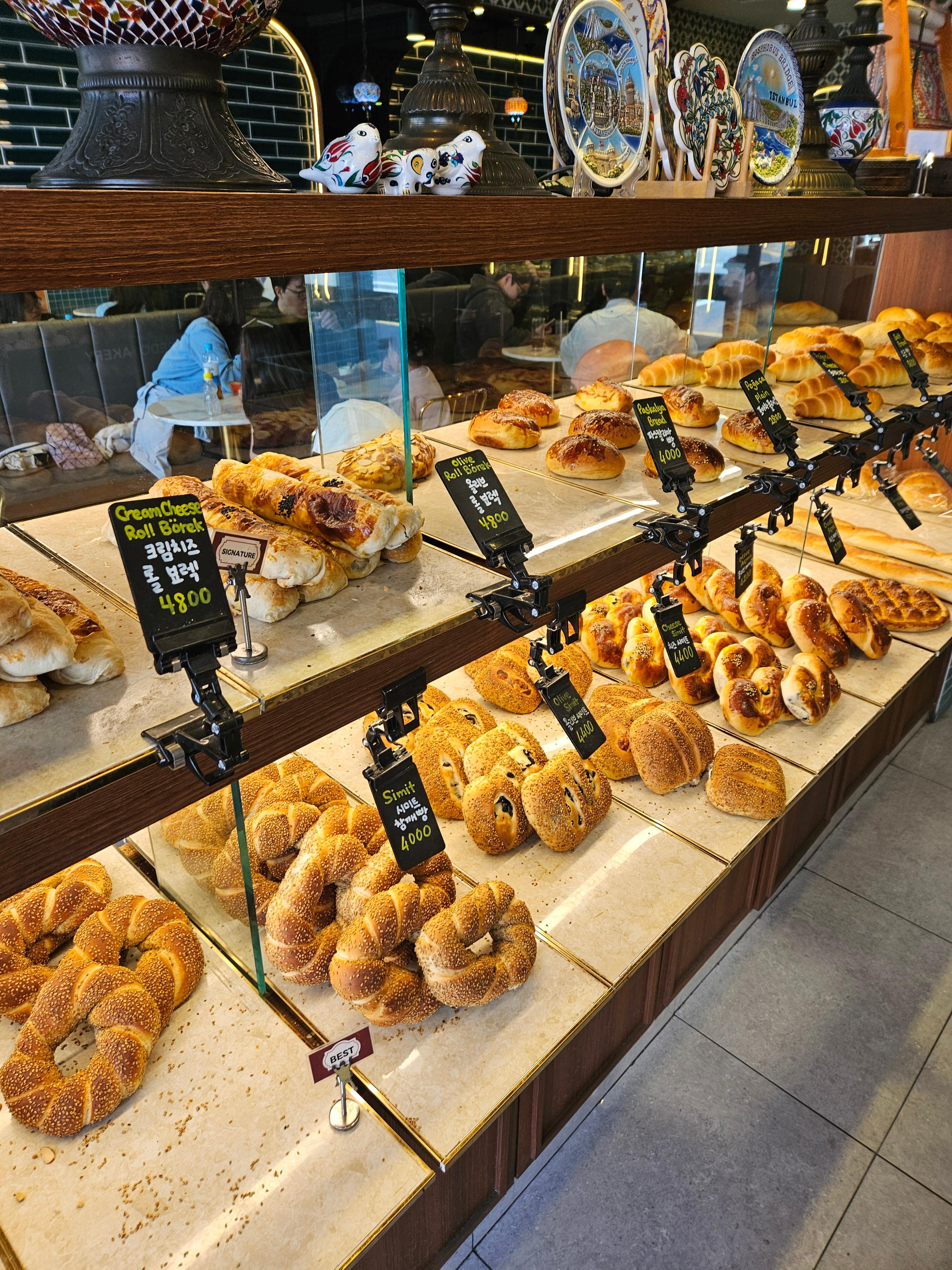 터키 음악이 은은하게 흐르고, 진열장에는 다양한 빵과 디저트가 가득! 보는 재미도 쏠쏠해요🥐🍰